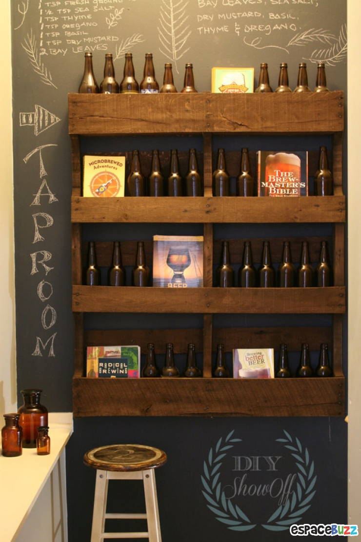 8. Une palette en bois devenue présentoir à bouteilles à accrocher au mur
