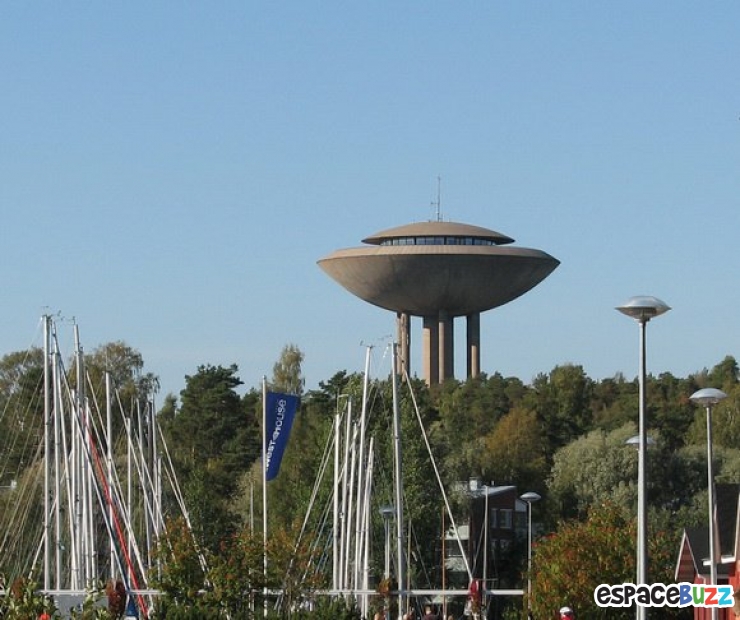 4. Le château d'eau en forme de soucoupe volante de Haukilahti, un quartier de la ville d'Espoo en Finlande