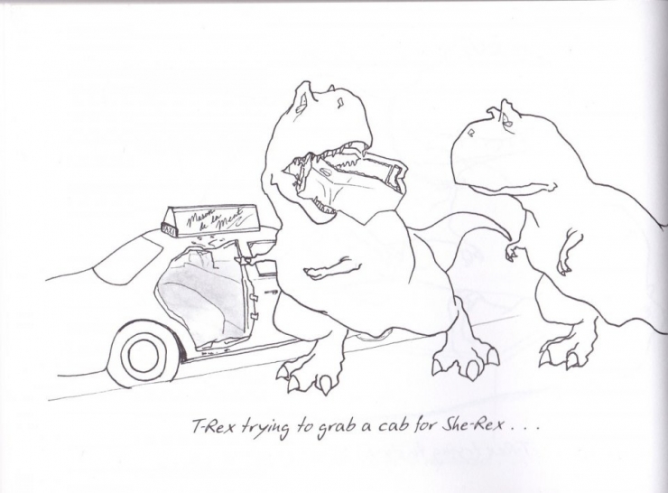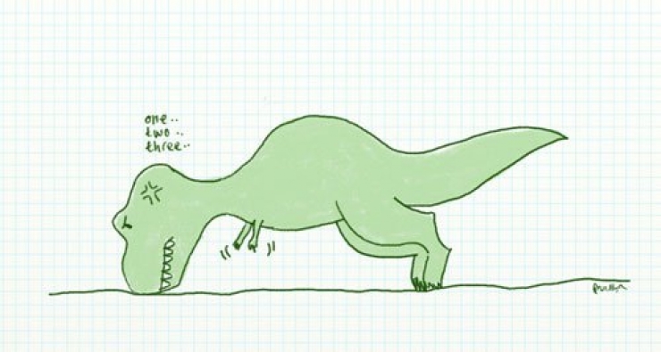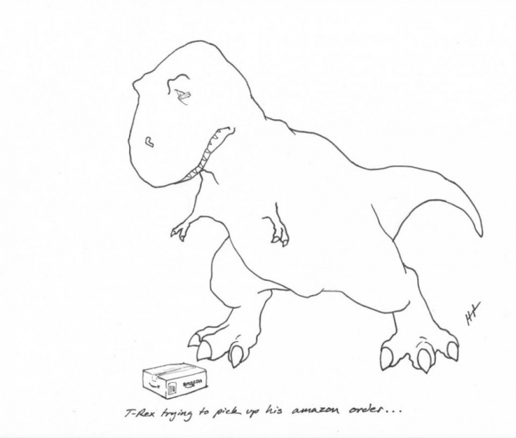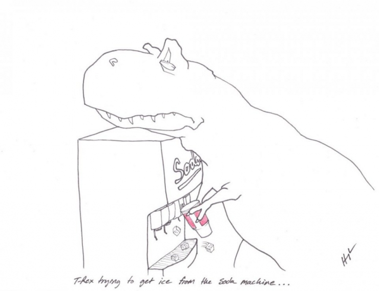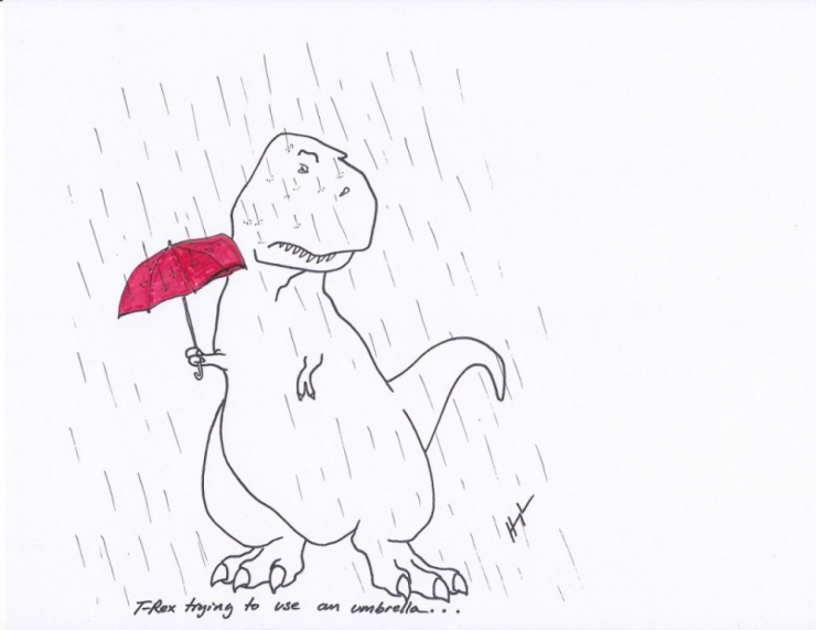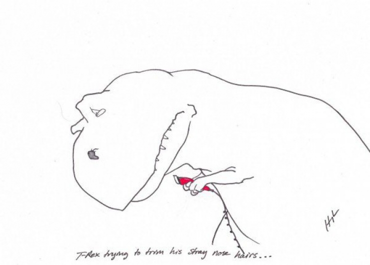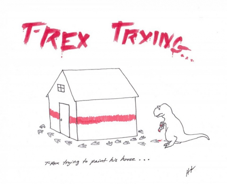 A l'image de cette série d'illustrations intitulée 'T-Rex Trying...' (Le T. Rex essayant de...) et signée Hugh Murphy. On peut y voir un sympathique Tyrannosaurus rex tentant vainement d'exécuter des taches pourtant anodies, mais qui deviennent impossibles à cause de ses petits bras...