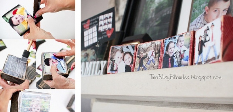 7. Ces photos et dessins collés sur des pavés de bois