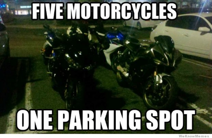 3. Ces cinq motards civilisés qui n'ont pas voulu se montrer égoïstes ; ils ont tous garé leurs motos sur une seule place de parking