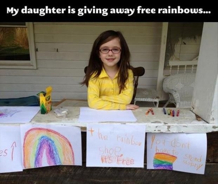 6. Cette fillette qui offre des dessins d'arc-en-ciel gratuit pour illuminer les journées des passants