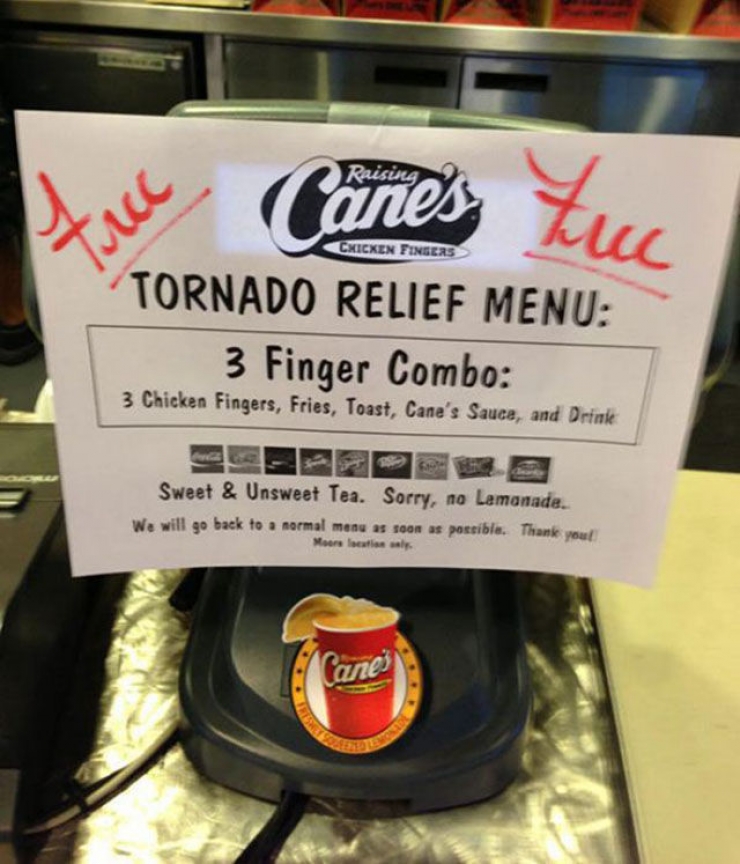 7. Ce restaurant qui offre des menus gratuits dans une ville sévèrement touchée par le passage d'une tornade