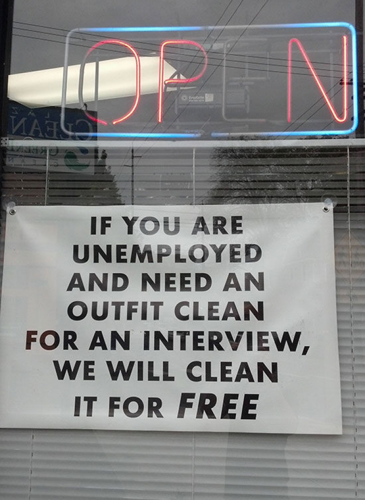 8. Ce pressing qui propose de nettoyer gratuitement les tenues des personnes au chômage qui s'apprêtent à passer un entretien d'embauche