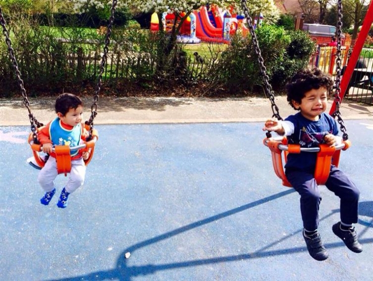 1. L'aîné ne comprend pas pourquoi son petite frère fait de la balançoire, lui aussi, ce copieur
