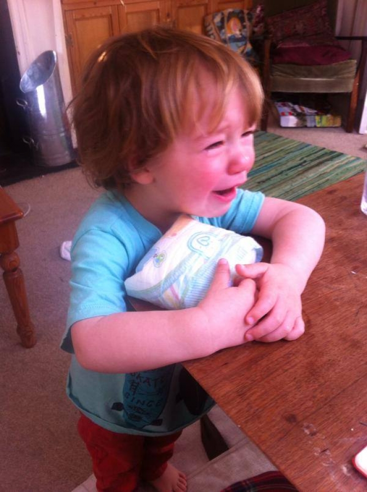 5. Il ne veut pas que sa couche pleine soit jetée à la poubelle. C'est qu'il tient à son chef-d'oeuvre, le petit...