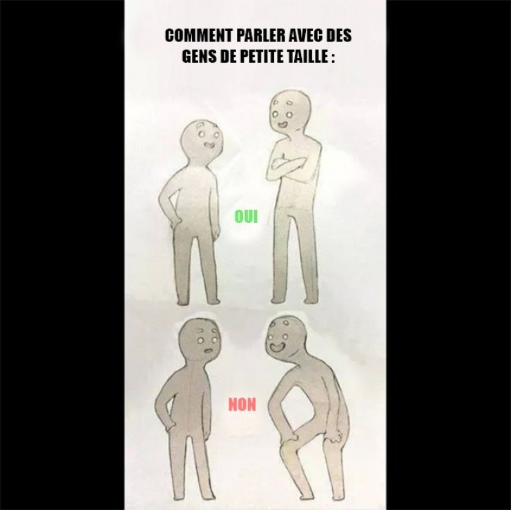 Ou de voir les regards songeurs et amusés des personnes qui nous demandent notre âge... les accolades et les tapes sur la tête comme si nous étions des peluches... les blagues ou les comparaisons avec Mimmie Mathy (Qu'on se comprenne bien, on l'aime bien notre Joséphine, mais 1m 60, c'est pas du nanisme hein !!!), et j'en passe et des meilleures ...
