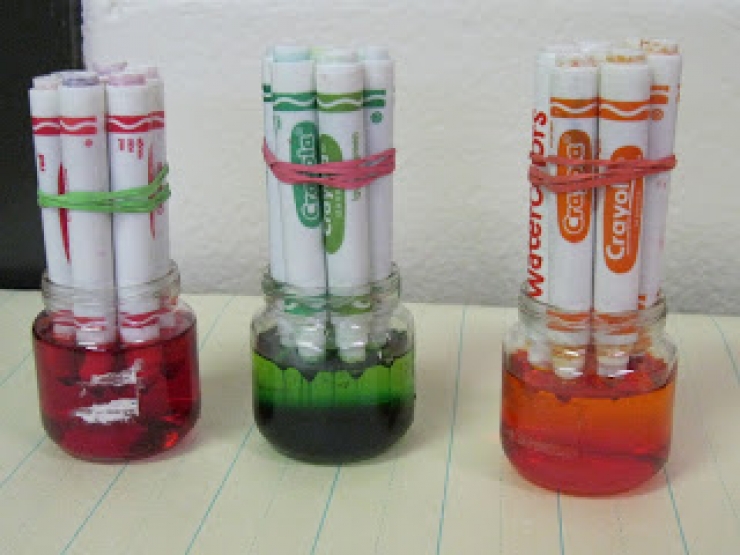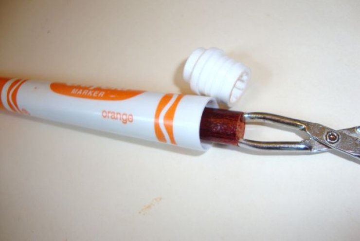 Si vous avez plusieurs feutres, attachez les ensemble, et si vous n'en avez qu'un, retirer la cartouche d'encre usée et plongez la directement dans le bol!