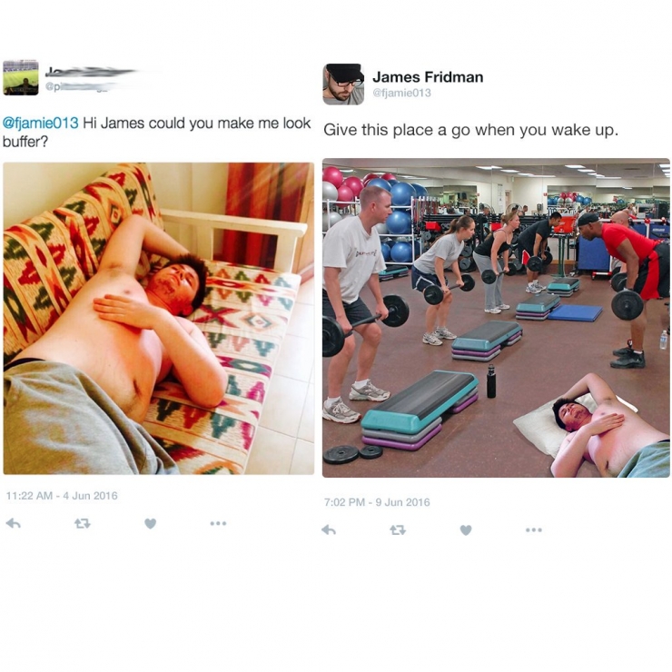 James Fridman est un graphiste très talentueux, mais qui a surtout beaucoup d’humour ! Ses clients formulent parfois des demandes pas très claires et avec lui, ça donne des images retouchées à se tordre de rire.