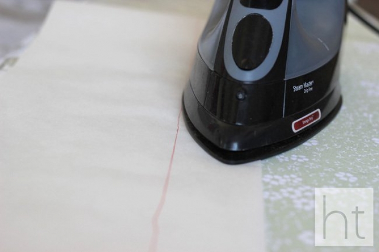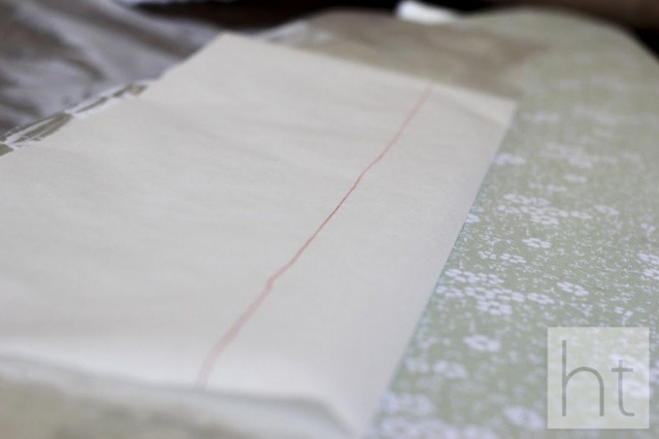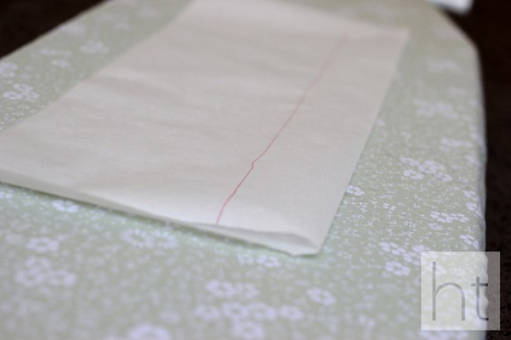 Sortez une grande feuille de papier sulfurisé, pliez la en deux dans le sens de la longueur, puis tracez un trait à environ 5 cm du bord. Comme ça vous connaîtrez la limite à ne pas dépasser avec votre fer !