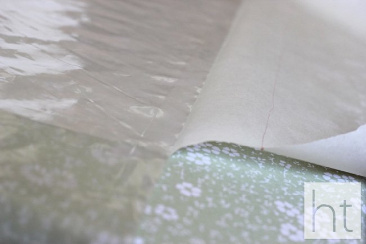 Ensuite, Repliez le papier sulfurisé ! Maintenant, faites fondre le plastique avec le fer, en passant ce dernier le long de la ligne que vous avez tracée sur le papier sulfurisé.