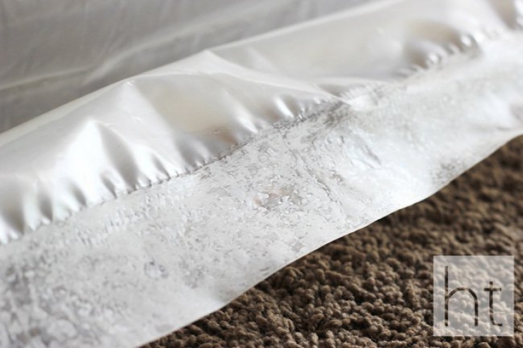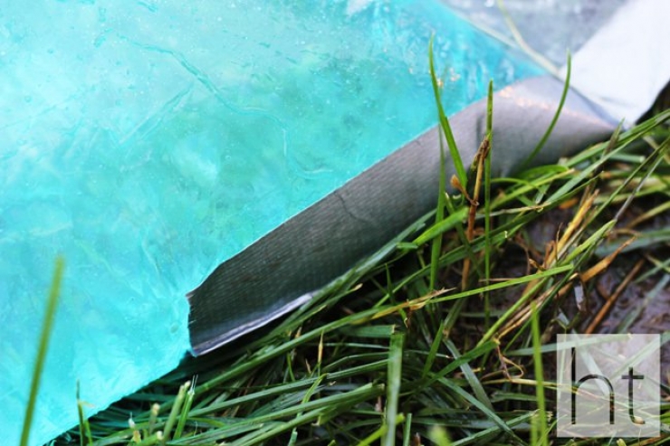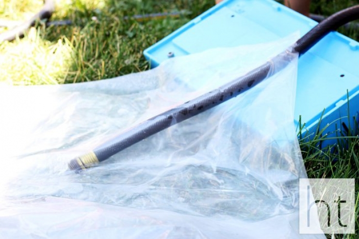 En pratique, c’est très simple, vous allez devoir plier la bâche en deux et 'souder' les bords en les fondant à l’aide d'un fer à repasser. Comme ça le joint sera parfaitement hermétique et les enfants ne risqueront pas de l’abimer.