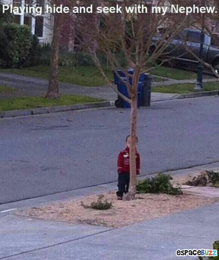 Quand ils s'y mettent, les enfants peuvent nous valoir d'interminables fous rires. C'est le cas de ces bambins qui n'ont visiblement pas intégré toutes les finesses du jeu de cache-cache. Pour beaucoup d'entre eux, l'on sent comme une petite confusion entre ne pas être vu et ne pas voir...