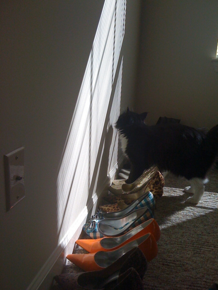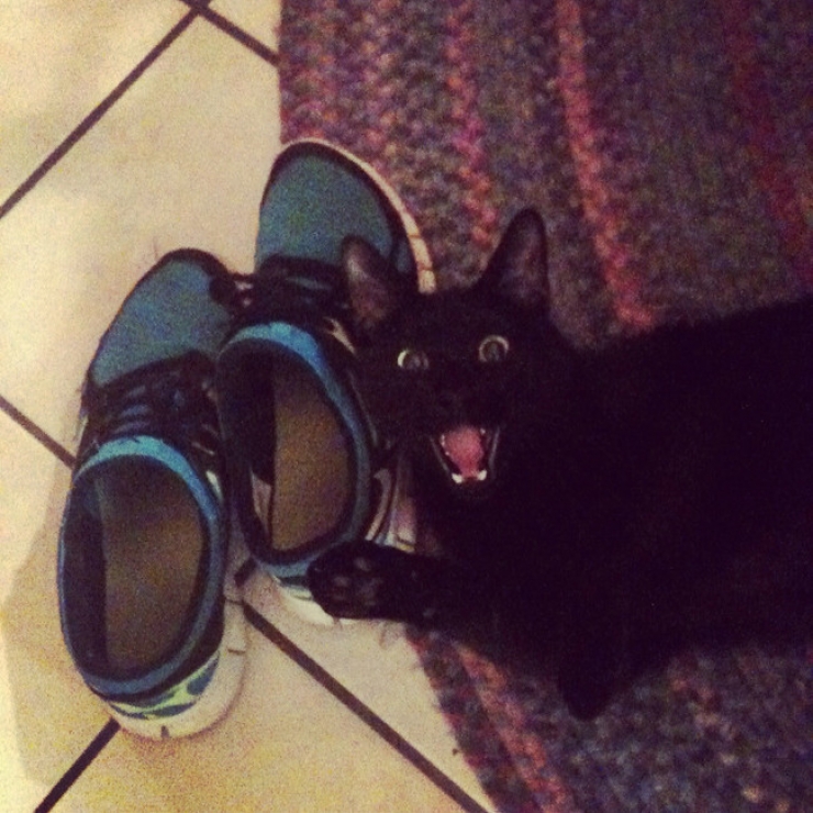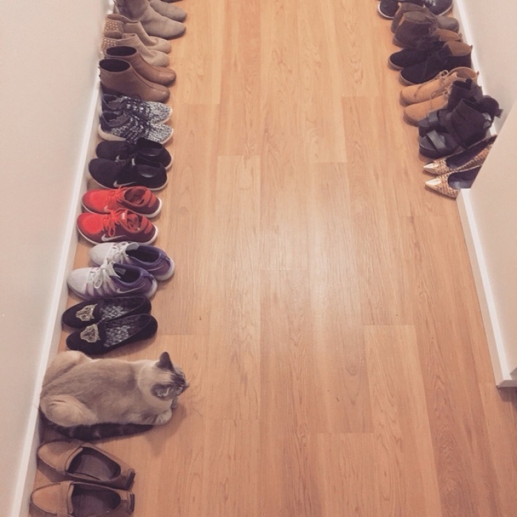 Ils se couchent dessus, font leur griffe dedans ou se frottent tout du long. Bref, c'est hyper difficile de récupérer sa paire de chaussures ou sa chaussure quand l'une de vos boules de poils se l'est approprié. Vous le poussez, il résiste ! Vous élevez la voix, il s'en fout ! C'est la guerre entre lui et vous !