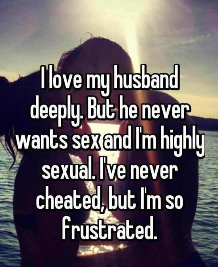13. ' J'aime mon mari profondément. Mais il ne veut jamais faire l'amour alors que je suis très sexuelle. Je ne l'ai jamais trompé, mais je suis assez frustrée. '