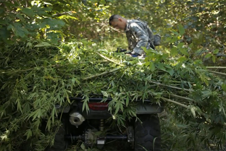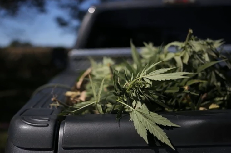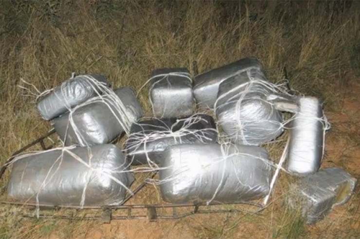 Selon les officiers, cette marijuana d'une valeur de 10.000$ serait probablement tombée d'un des petits avions qu'utilisent les contrebandiers pour passer de la drogue ou des médicaments par la frontière...