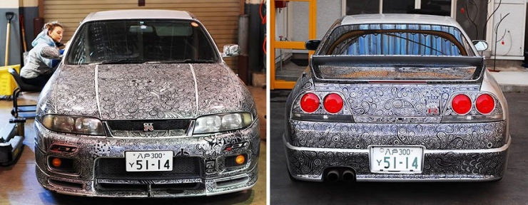 Elle décide en effet de dessiner quelques jolis motifs sur les pare-chocs du véhicule afin d'y apporter une petite touche tuning bien à elle. Et comme Monsieur a adoré, le couple s'est rapidement laissé convaincre d'étendre ces dessins à toute la surface de la voiture. Son artiste de femme s'en est donné à coeur joie...