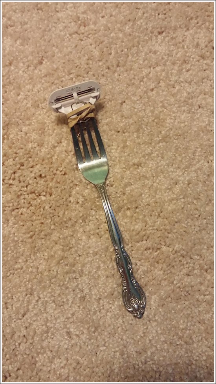 16. Celui qui utilise une fourchette comme support pour son rasoir