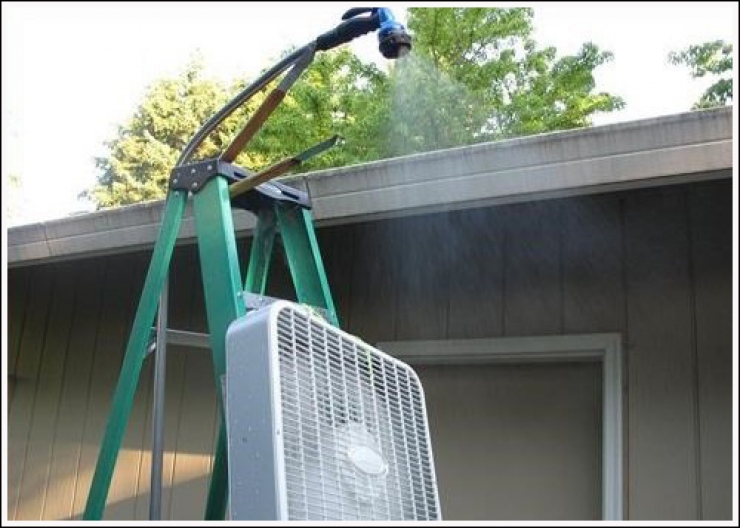 11. Celui qui installe sur son jardin un jet d’eau et un ventilateur en guise de douche-brumisateur
