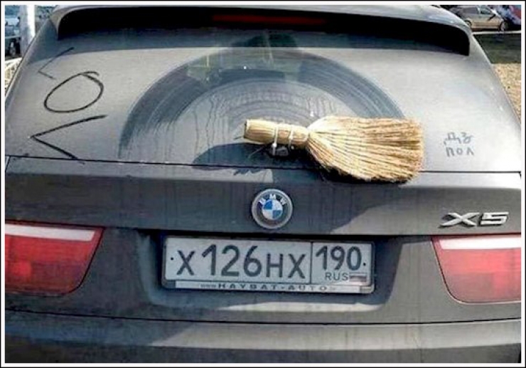 14. Celui qui utilise un balai comme essuie-glace de voiture