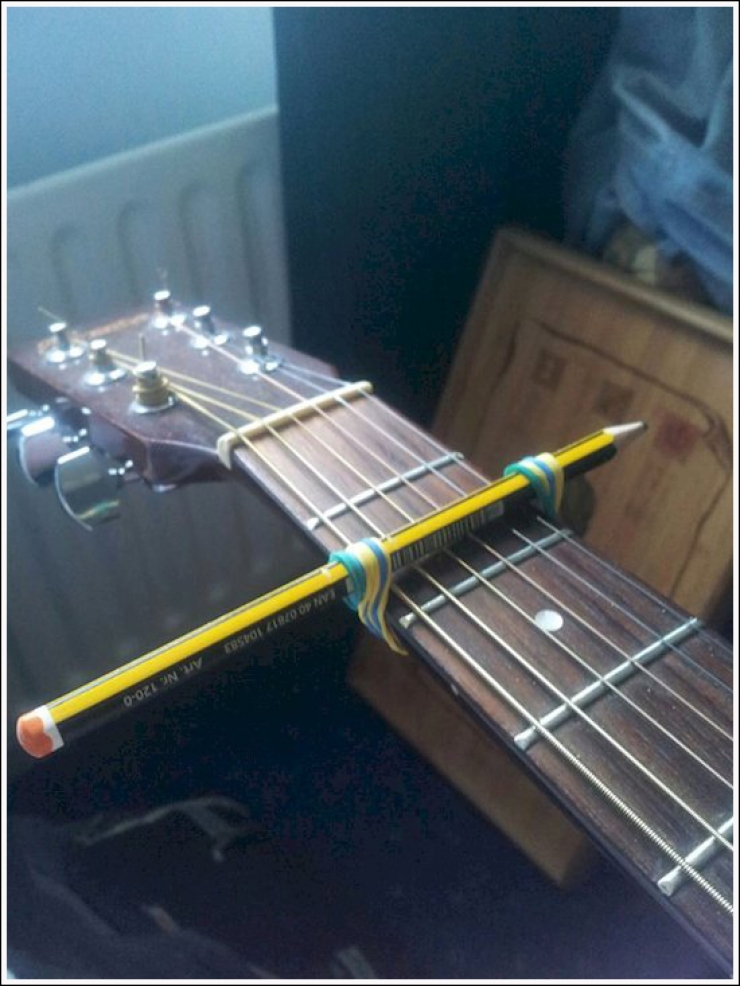 5. Celui qui attache un crayon à papier à sa guitare pour en faire un capodastre