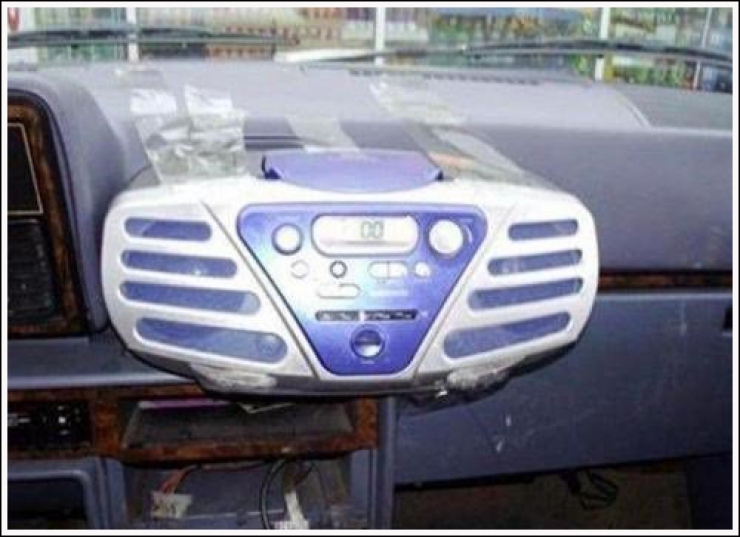 9. Celui qui colle au scotch une radio-CD sur le tableau de bord de la voiture