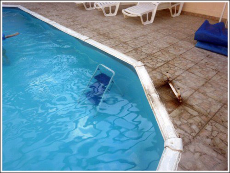 12. Celui qui pose un escabeau au fond de la piscine afin de pouvoir monter
