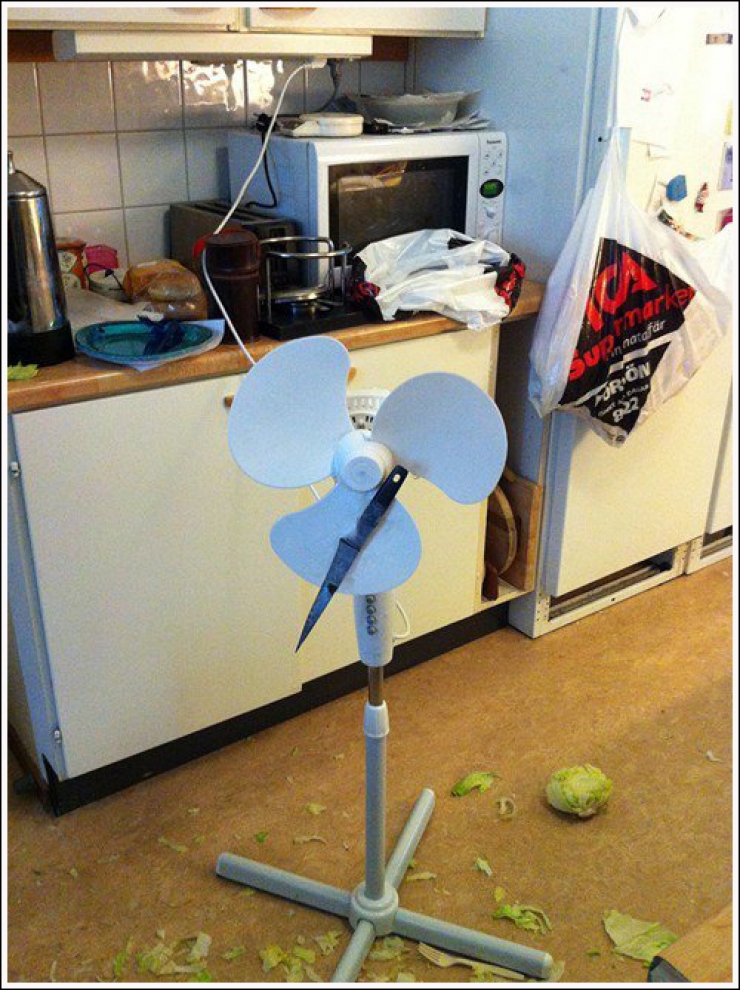 13. Celui qui attache un couteau à un ventilateur pour obtenir un robot qui coupe les salades