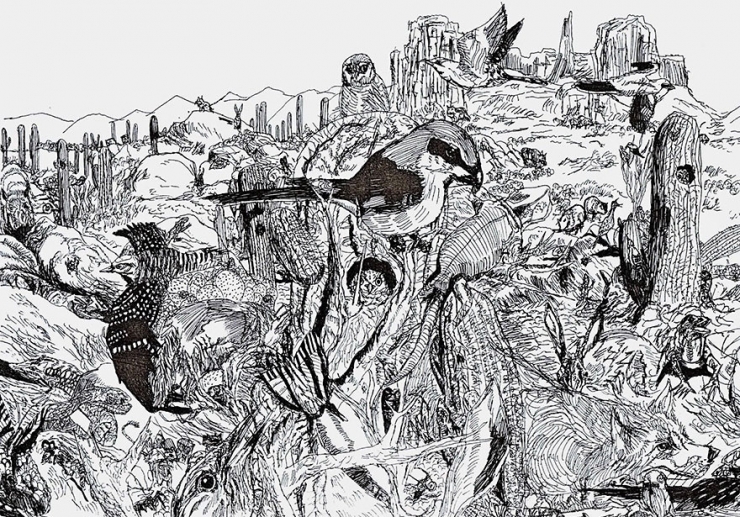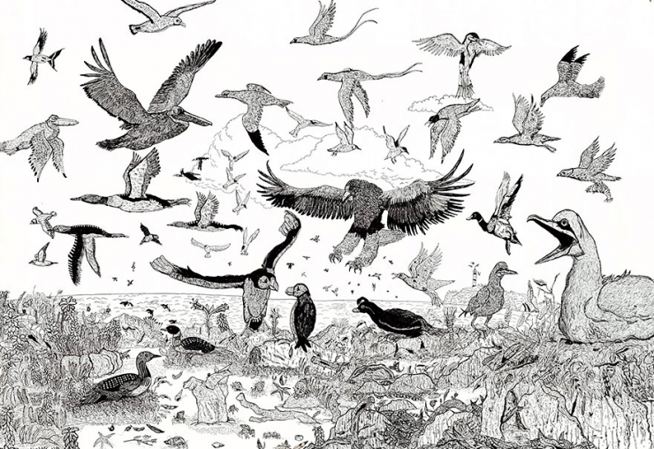 Mais loin de se contenter de reproduire fidèlement des éléments de la faune et de la flore, le jeune dessinateur laisse également libre cours à son imagination en représentant des animaux hybrides et des êtres préhistoriques.