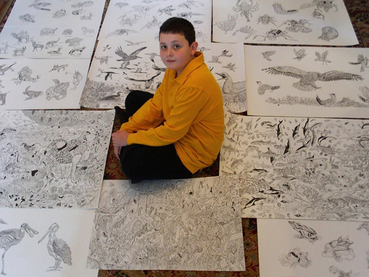 Ce garçon serbe de 11 ans est un petit artiste ; passionné de dessin, Dušan Krtolica dessine des animaux et des plantes avec un impressionnant souci du détail.