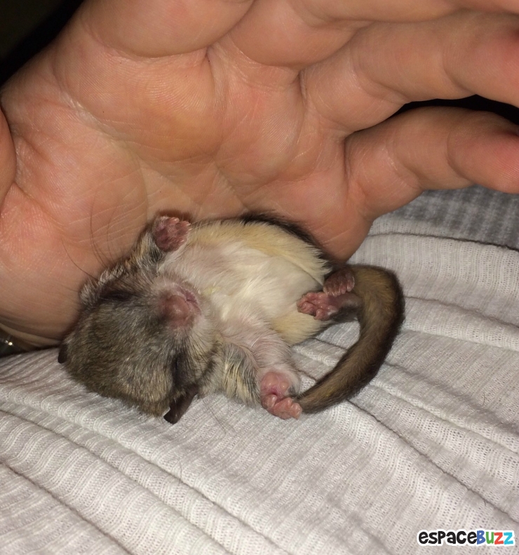 Biscuit est un écureuil volant du Sud qui a été trouvé sur un trottoir, à moitié mort alors et brûlant sous un soleil atroce!