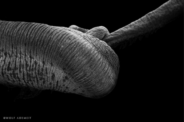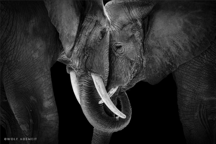 Né en 1954 et vivant à Moers, en Allemagne, le photographe Wolf Ademeit a voulu immortaliser ces moments d'échanges émotionnels qui font que ces proboscidiens sont des animaux à part.