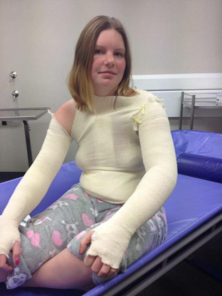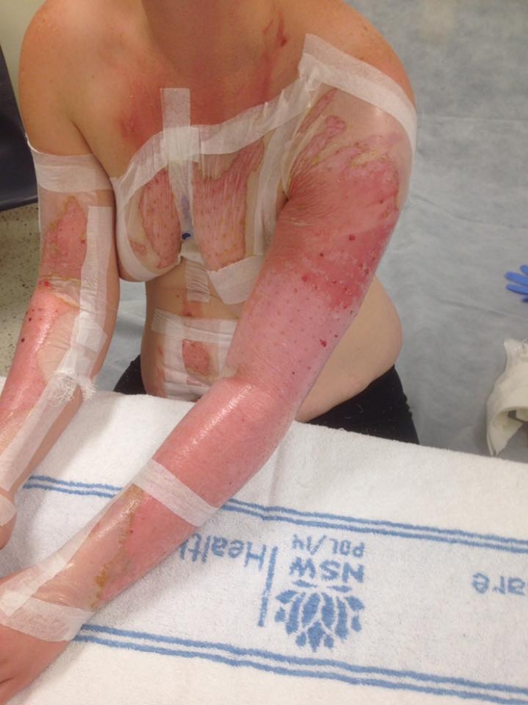 La maman court vers la salle de bain en hurlant de douleur, arrache sa chemise et passe sous l’eau froide. L’ambulance vient la chercher quelques minutes plus tard, elle est brûlée au ventre, à la poitrine et aux bras et son mari est également touché à l’abdomen.