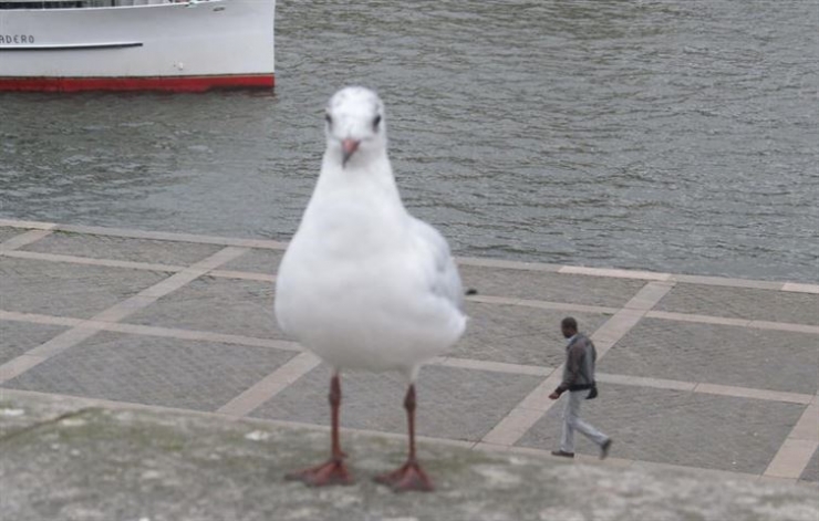 2. Cet homme minuscule ne va pas à la rencontre de cet oiseau géant