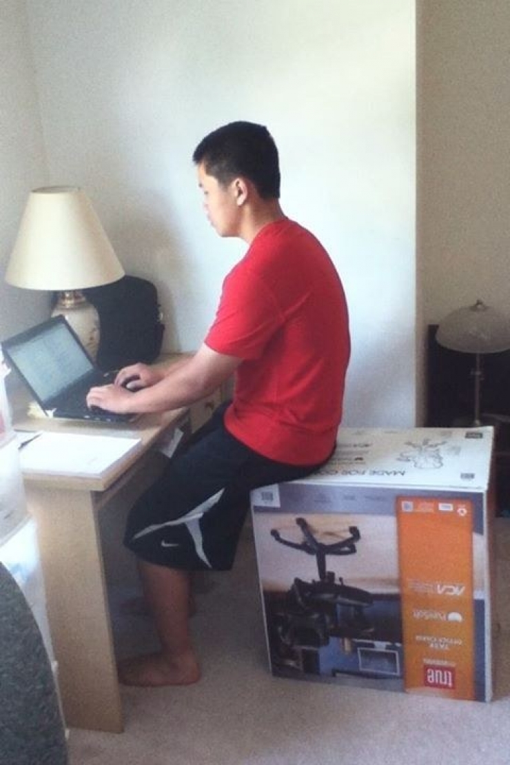 1. Ce jeune homme qui a trop la flemme de déballer et de monter son fauteuil tout neuf