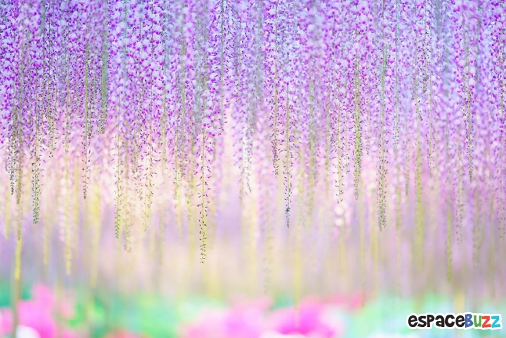 Cette plante de quelques 144 ans est la plus grande glycine du Japon et donne l’illusion d’avoir un ciel rose lorsque l’on est dessous.