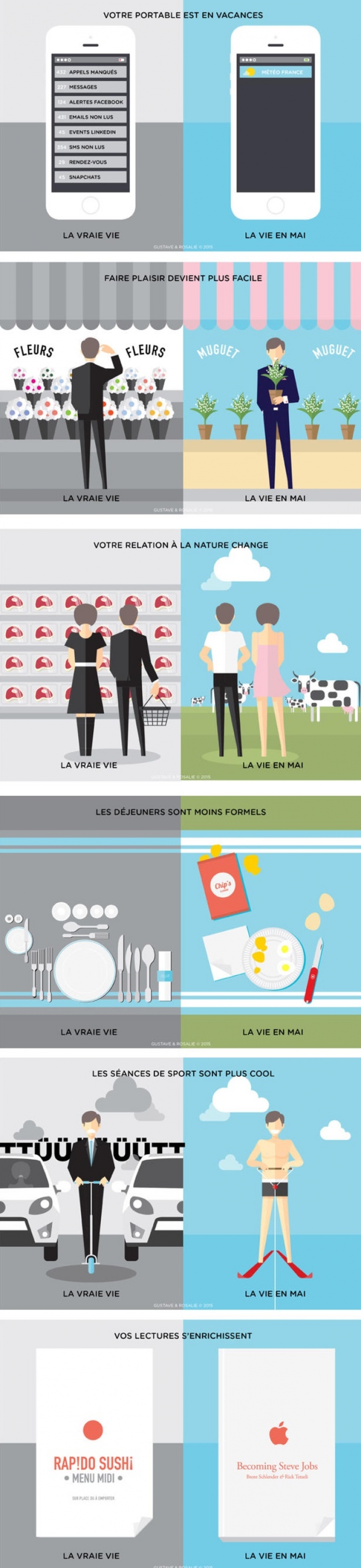 La vraie vie Vs la vie en mai, par Gustave & Rosalie