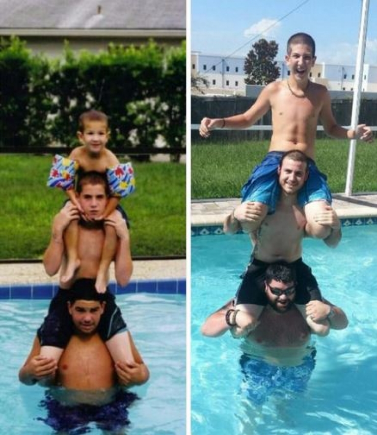 Tous les parents vous le diront, les enfants grandissent trop vite et c’est ce qui a poussé ces différentes familles à reconstituer leurs photos des années plus tard pour montrer à quel point les choses vont vite !