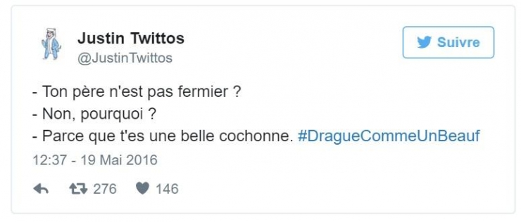 Sur twitter, les internautes se régalent avec le hashtag #DragueCommeUnBeauf. L'occasion de ressortir les pires phrases de drague sorties par des gros relous qui auraient mieux fait de ne jamais ouvrir la bouche !