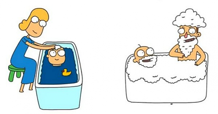 Faire prendre son bain à son fils ou sa fille, lui donner son repas, lui apprendre toutes sortes de choses… Toutes ces activités propres aux parents sont menées de diverses façons. Bien entendu, ces illustrations sont caricaturales. Elles montrent souvent des papas un peu irresponsables, qui ne pensent qu’à jouer avec leurs enfants. Mais cela fait aussi partie de l’humour des graphistes et youtubers de Smetana TV…