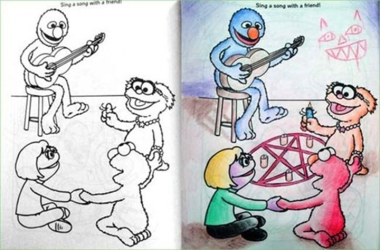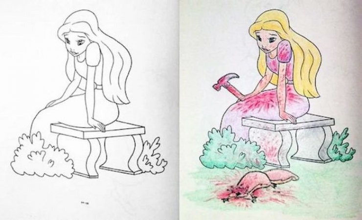 Le coloriage est une très bonne activité pour les enfants. Il leur permet d’apprendre à jouer avec les couleurs, à s’appliquer et il stimule leur créativité. Mais lorsque les livres de coloriages tombent entre les mains d’esprits tordus, cela peut déboucher sur de véritables massacres picturaux.