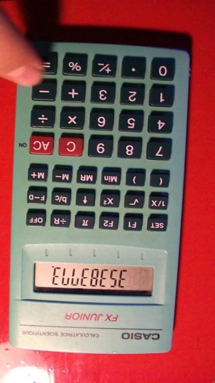 16. Taper « 35383773 » sur la calculatrice et la retourner pour faire des phrases vulgaires