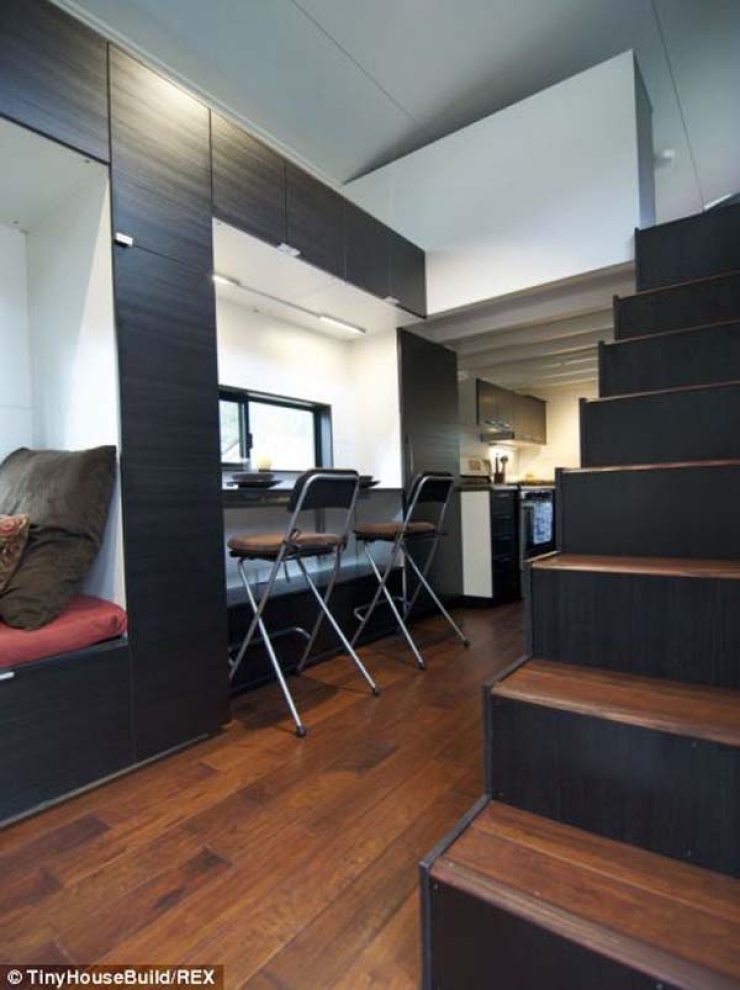 Cette maison n'a coûté que 24000 euros à Andrew et Gabrielle Morriso, équipement et mobilier compris. Le couple, qui a bénéficié d'une formation en bâtiment, gère un le site web Build A Tiny House par le biais duquel il propose des conseils aux personnes qui souhaiteraient elles aussi construire leur propre maisonnette