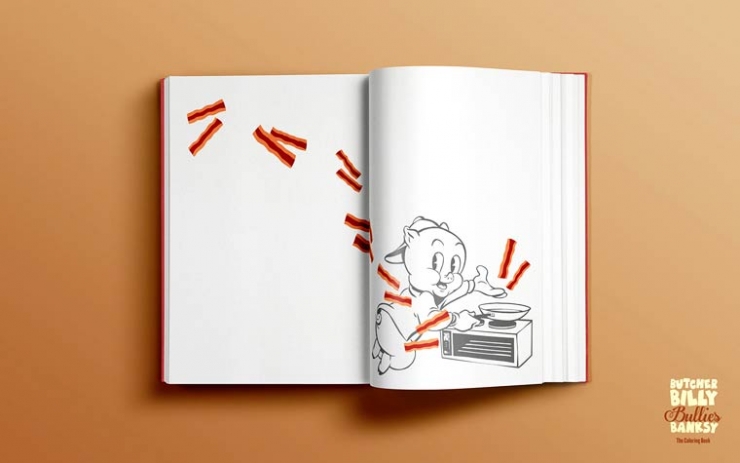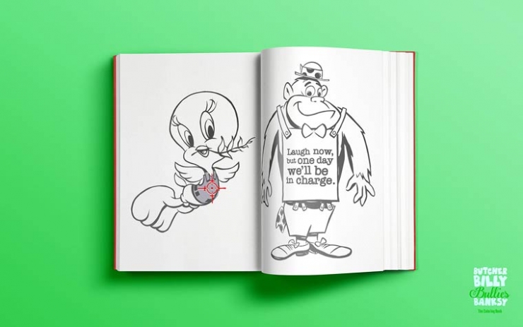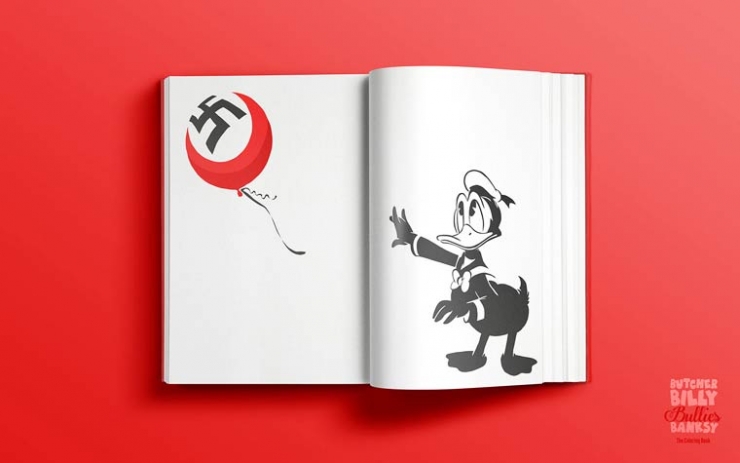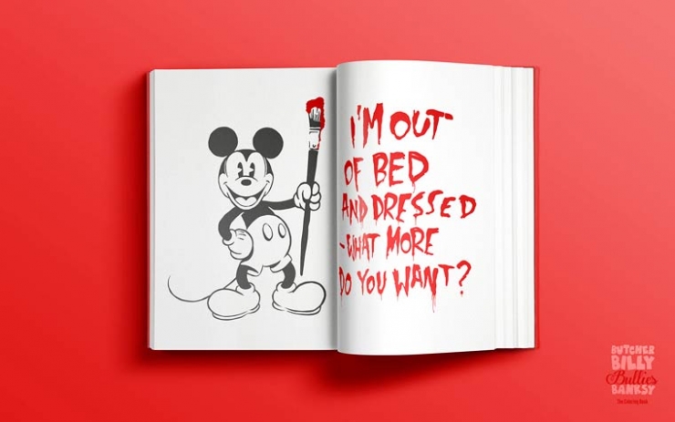 Dans cette dernière, il décide de revisiter les célèbres oeuvres d'art du street artist anglais Banksy avec des personnages de Cartoon que nous aimons tant, tel Bugs Bunny, Donald... Ce projet est tellement génial, qu'il a été décliné en livre de coloriage fictif pour les enfants !