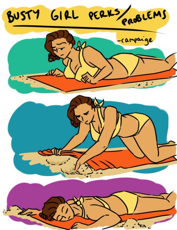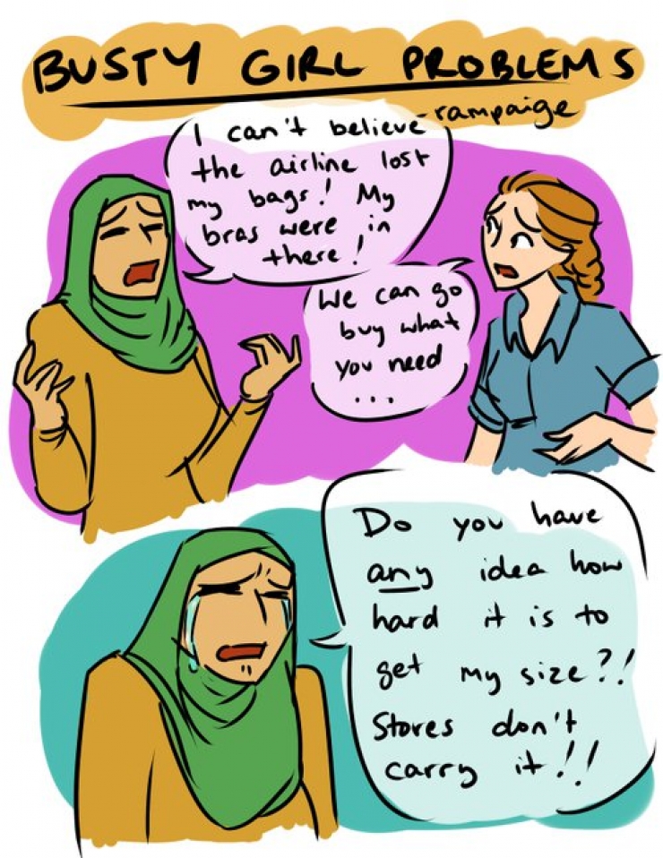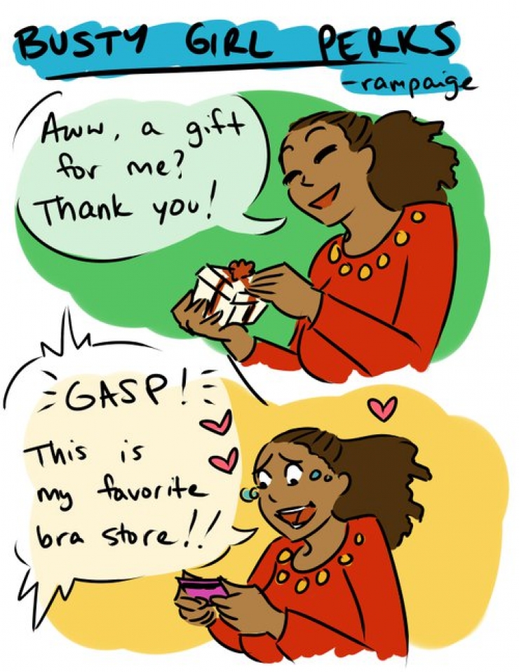 Sont visées celles qui ont des grosses poitrines et qui doivent faire face à des situations qui ne sont pas toujours très amusantes !