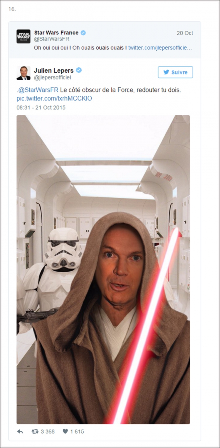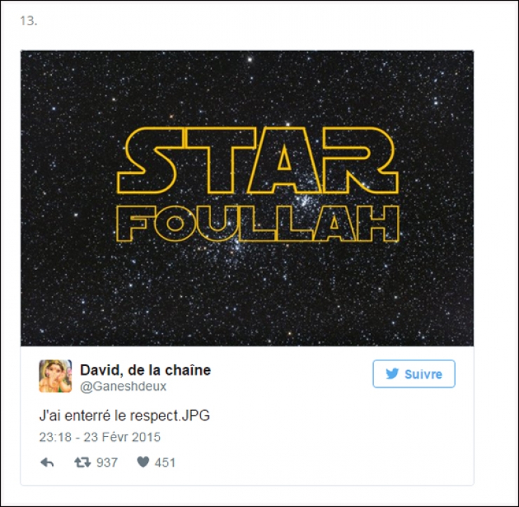 Alors que sortait le 7ème volet de la Saga Star Wars ce 16 décembre 2015, la Twittosphère n’a pas mis longtemps à faire parler d’elle avec l’humour qu’on lui connait !