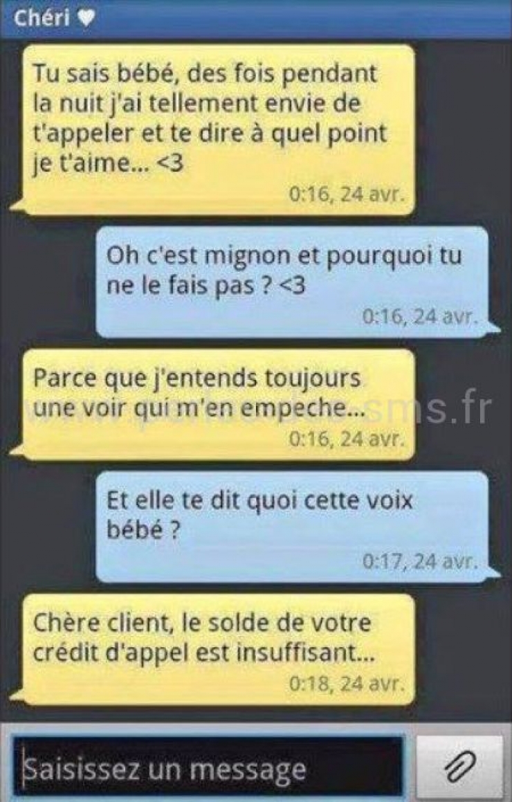 Une petite compilation d’sms qui traduit parfaitement l’alchimie qui peut être présente au sein d’un couple… Ou pas !