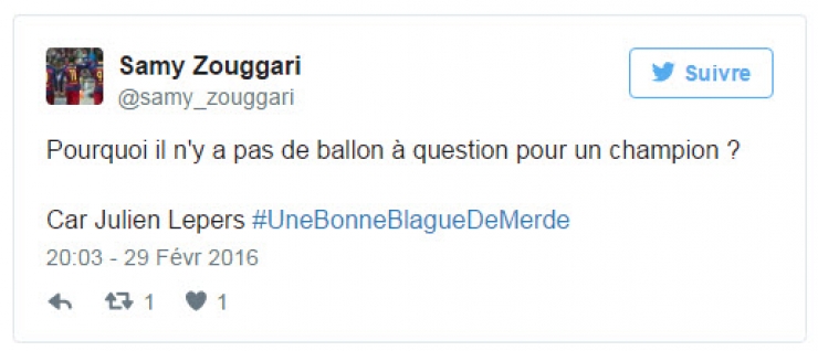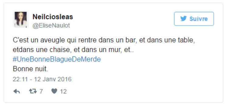 Le principe de ce hashtag: partager une blague, la plus pourrie, la plus courte et la plus absurde qui soit, racontée avec le maximum de détachement possible…