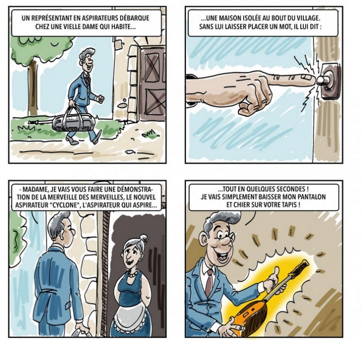 Un représentant en aspirateurs se rend chez une dame pour lui faire une démonstration hilarante ! La réponse de la mamie va lui faire regretter son geste…
