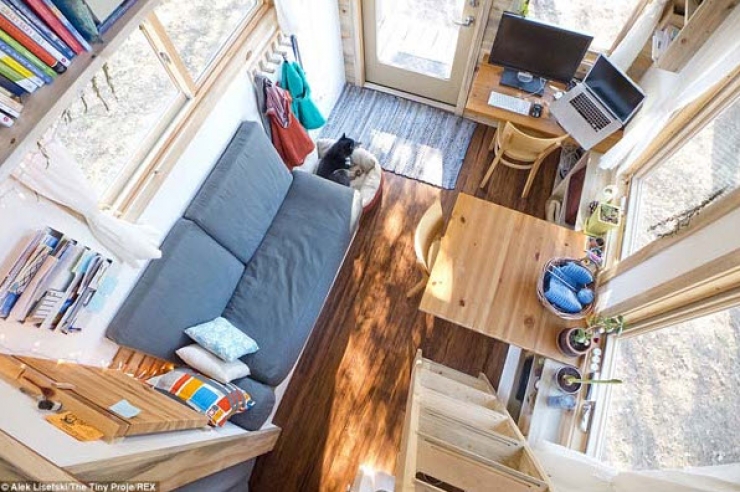 Âgé de 31 ans, Alek Lisefski gagne sa vie en concevant des sites Web. Parce qu'il n'a pas eu envie de dépenser des fortunes en louant ou en achetant une maison classique, le jeune homme a décidé de s'en construire une en Californie. Très peu spacieuse (2,44 x 6 mètres) mais intelligemment agencée, elle lui a coûté moins de 22 000 euros.